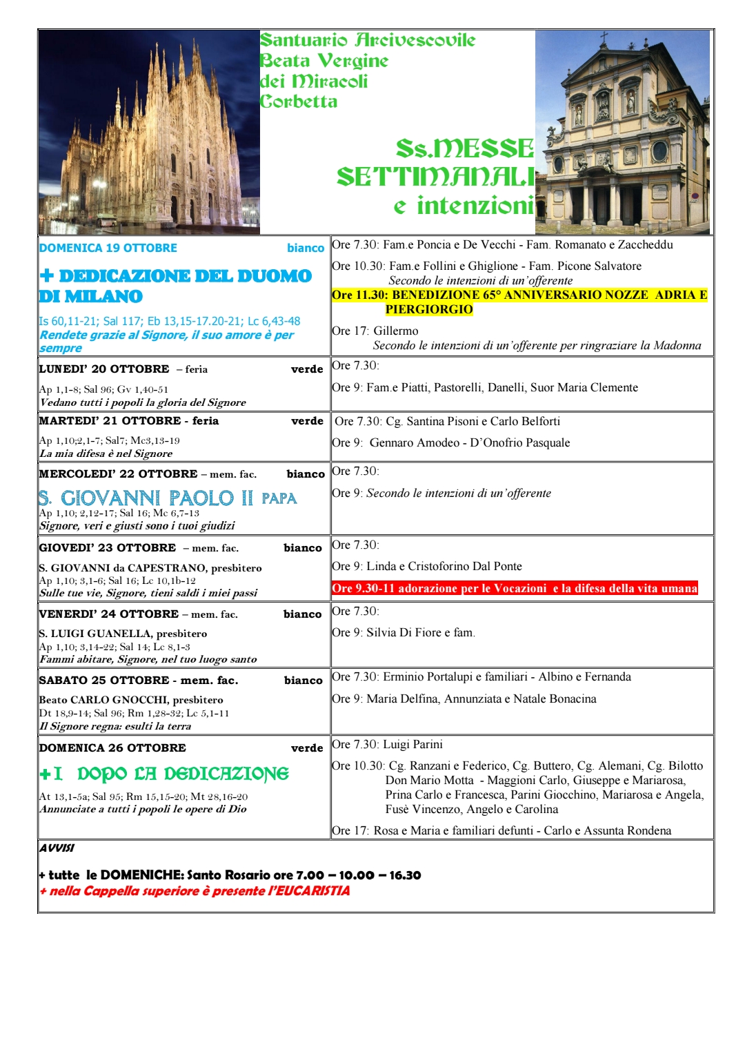 Per un appuntamento con il sacerdote o per le intenzioni delle Sante Messe rivolgersi alla Segreteria.